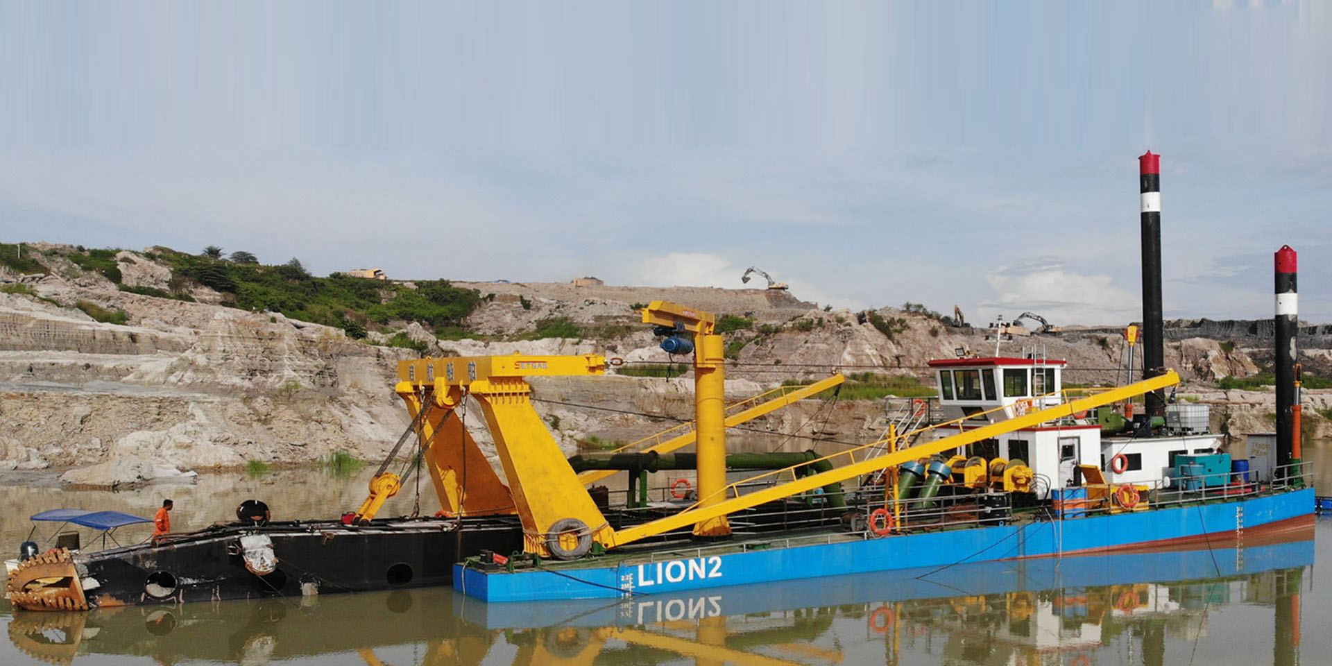 濰坊東洋??浦毓そㄔ斓?000流量全電動水下泵絞吸船服務馬來西亞錫礦治理項目現場